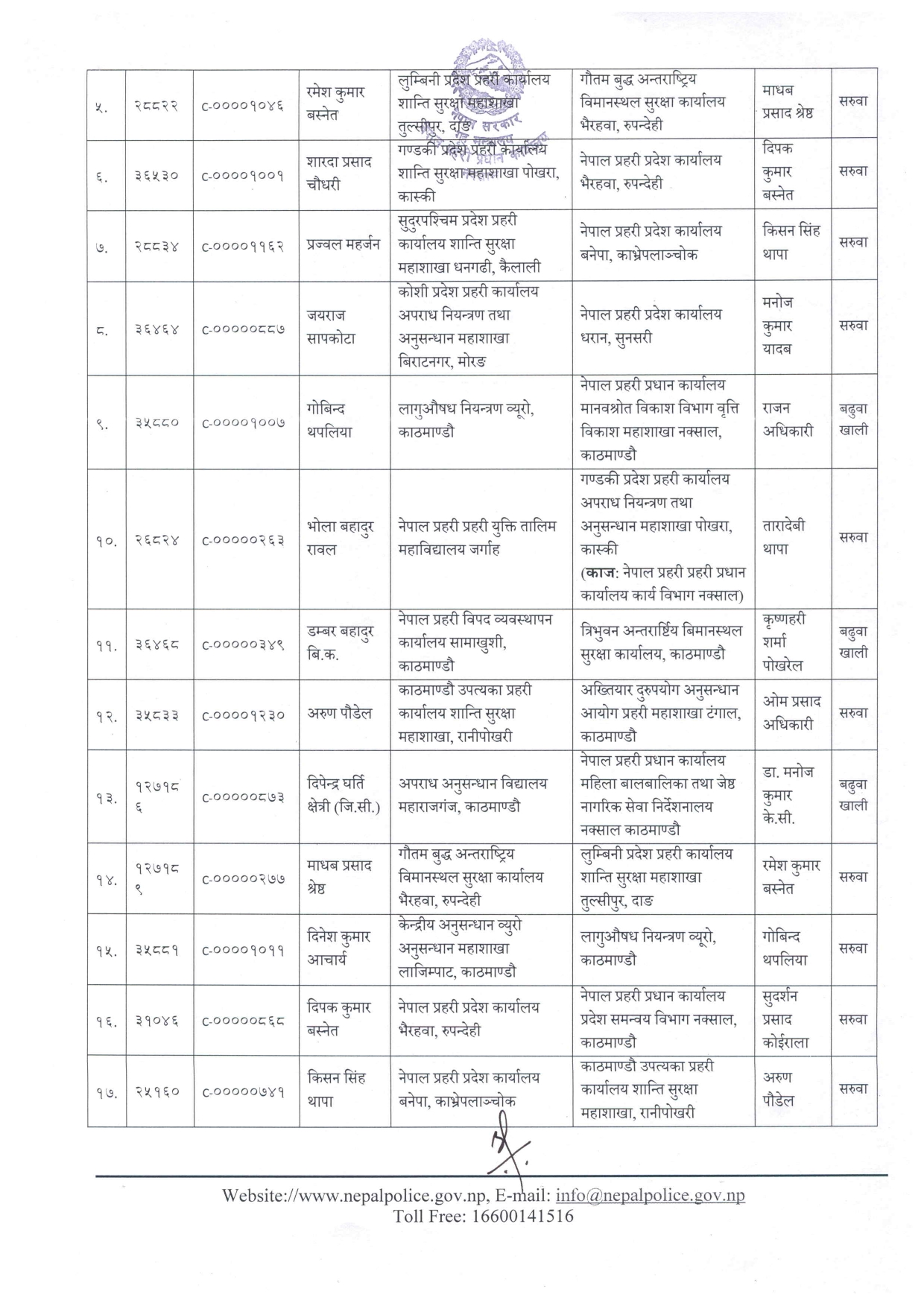 ssp_7401_page-0002[1] Post navigation Previous: रबि लामिछाने गृहमन्त्री भएपछि २० जनपद प्रहरी समूहतर्फको प्रहरी वरिष्ठ उपरीक्षक (ssp) हरुको सरुवा/काज सम्बन्धमा (मिति २०८१।०२।१६ गते) Leave a ReplyYour email address will not be published. Required fields are marked *Comment * Name Email Website