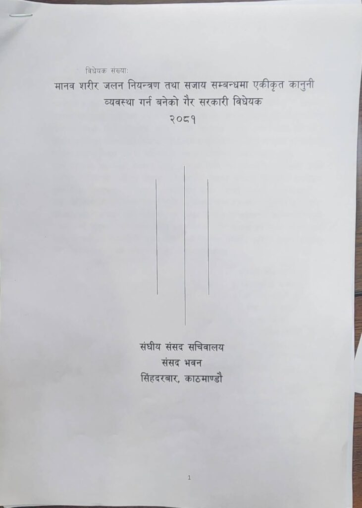 जलन पीडितहरु धेरैजसो बिपन्न वर्ग र पिछडिएका क्षेत्रको समेत हुने गरेको पाइएको छ । यस्ता घटनाहरुलाई न्यूनीकरण गरी तत्काल उद्दार, उपचार, राहत र पुनर्स्थापनाको प्रभावकारी कानुनी व्यवस्था गरी पीडितको लागि विशेष आर्थिक राहत कोषको समेत व्यवस्था प्रभावकारी गर्न कानुनका निर्माण अत्यावश्यक भएकोले यो “मानव शरीर जलन नियन्त्रण तथा सजाय सम्बन्धि कानुनी व्यवस्था गर्न बनेको गैर सरकारी विधेयक“ गैर सरकारी विधेयकको रुपमा पेश गरिएको छ ।